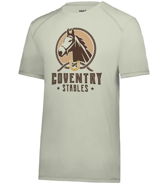 * 100% soft-spun polyester with color secure(r) technology that helps prevent dye migration * Soft cottony feel * * Non branded tag-free label * Crew neck * Tonal topstitching * Set-in sleeves with angled shoulder seam for mobility and comfort