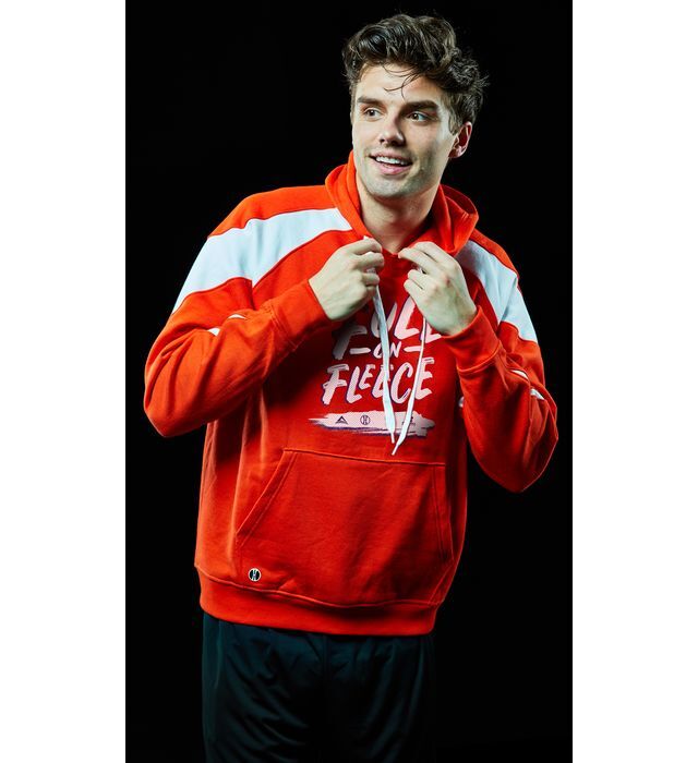 9 ounce 60% cotton/40% polyester athletic fleece * Woven label * Hood with flat braid drawcord on Adult sizes only * Contrast color inserts * Raglan sleeves * Front pouch pocket * Rib-knit cuffs and bottom band