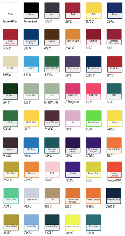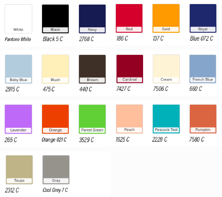NOTE: Some Pantone shades are not available (e.g. metallic shades) - contact us to confirm availability of the Pantone you need.